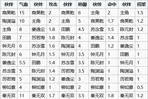 陶渊溢要在完成专属任务后获取,是目前血量成长第三的伙伴,非常理想的平民前排人物。 而且陶渊溢的武学资质非常均衡【全是0.8】,刀剑拳棍任你选择。